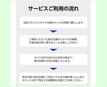 5.タイヤ交換チケットのご利用には同一店舗でタイヤとチケットを同時にご購入いただく必要がございます。
