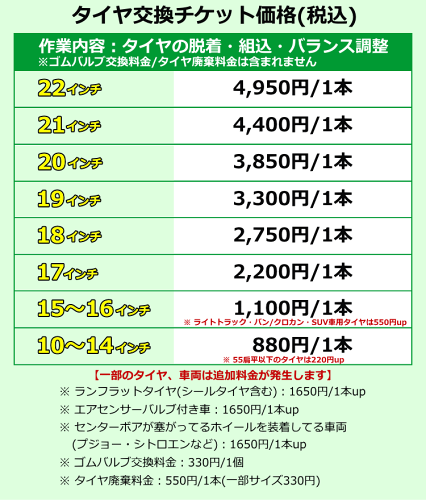 他店で購入されたタイヤは、本チケットの対象外となります。